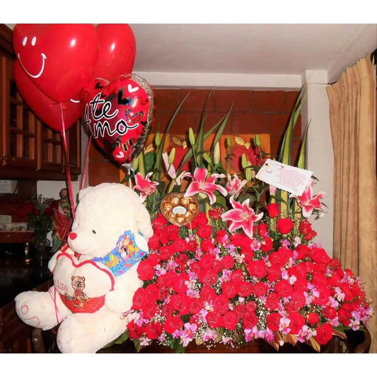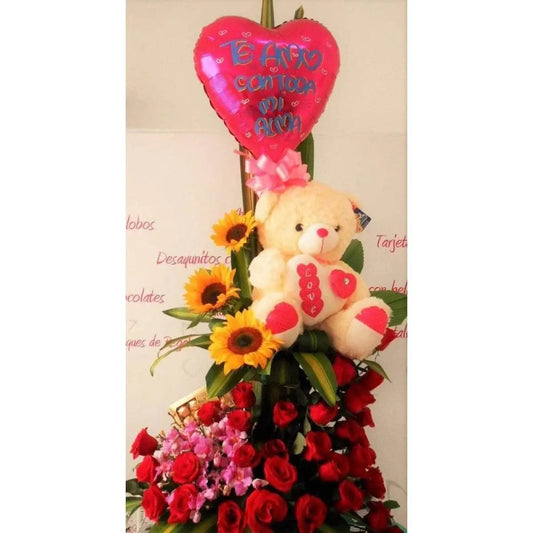 Sweet Valentine - Rosas Rojas Gerberas - Peluche